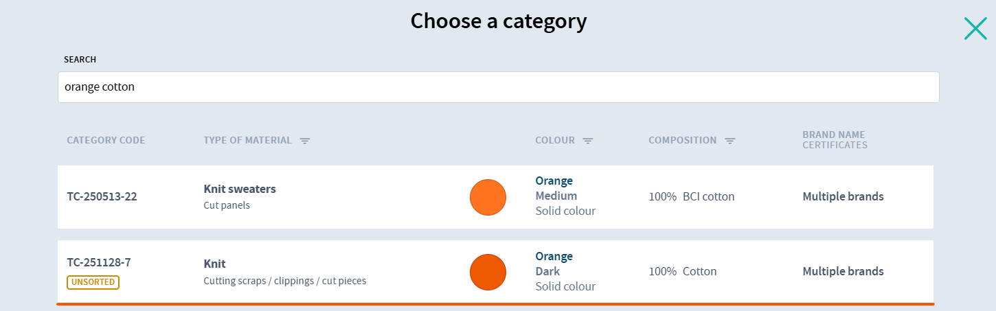- EXISTING/INTERNAL MATERIAL - Use the search to check whether a matching material category already exists in your inventory. If found, add the received waste to that category.