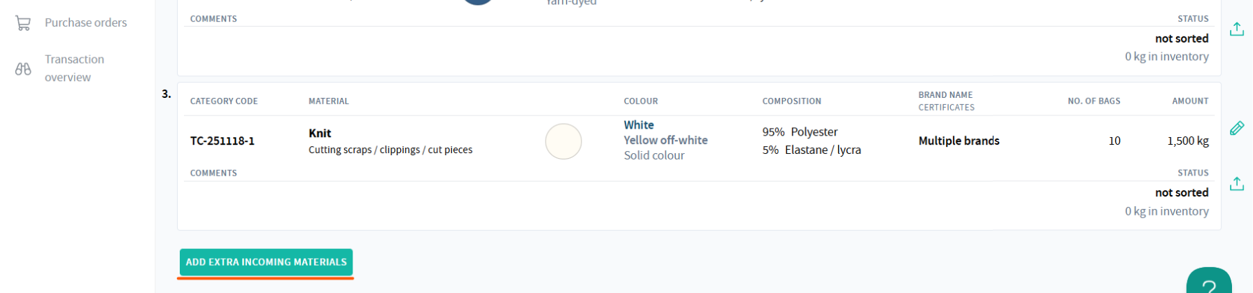 - Find the ADD EXTRA INCOMING MATERIALS button at the bottom