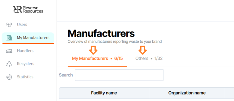 By clicking View, you can access a manufacturer’s profile and, most importantly, see which handlers and recyclers we have traced your waste to. This can help you identify overlaps in your networks and explore potential partnership opportunities.