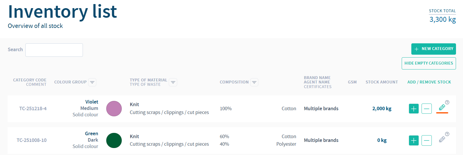 Categories can be edited only if they haven’t been used in any shipments and were created by you. Categories used in sent shipments or created by colleagues must be corrected by contacting support@reverseresources.net.