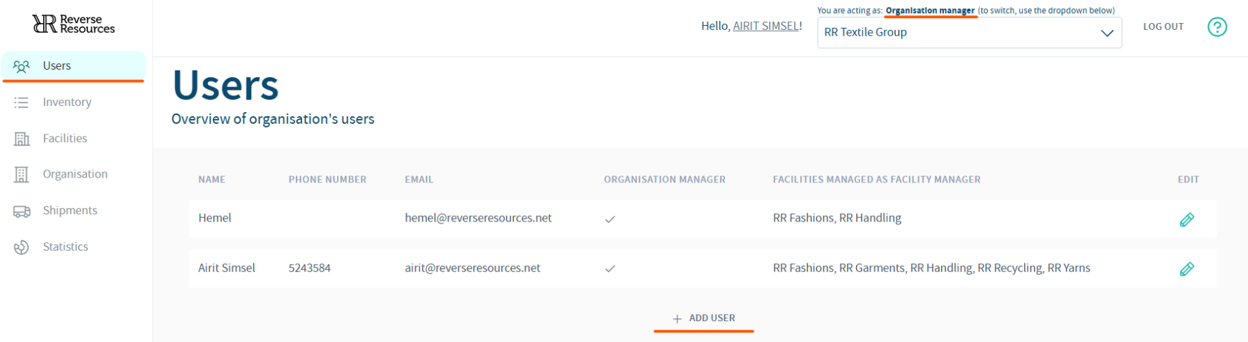 To add a user to a facility or organisation, click the pen icon at the end of the user’s name and select the facilities they should have access to.