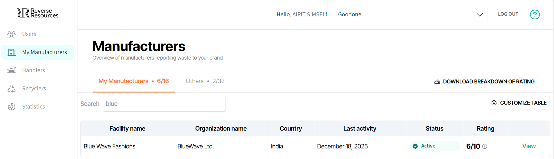 - That brand will be able to see only the waste data registered under its own name