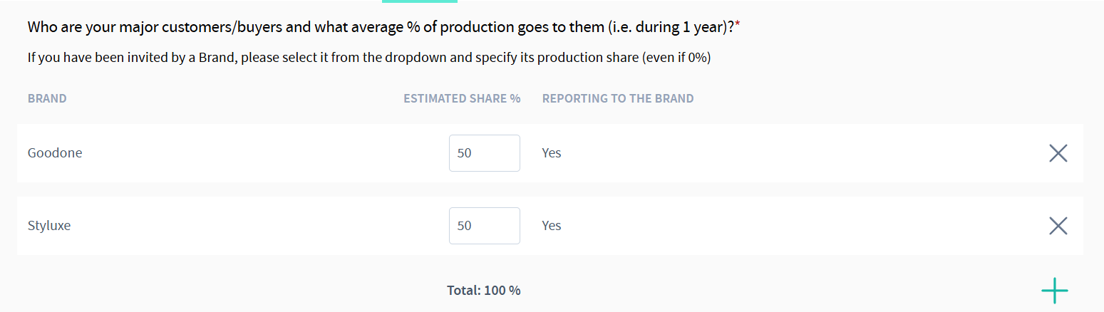 “Who are your major customers/buyers, and what average percentage of your production goes to them over a year?”